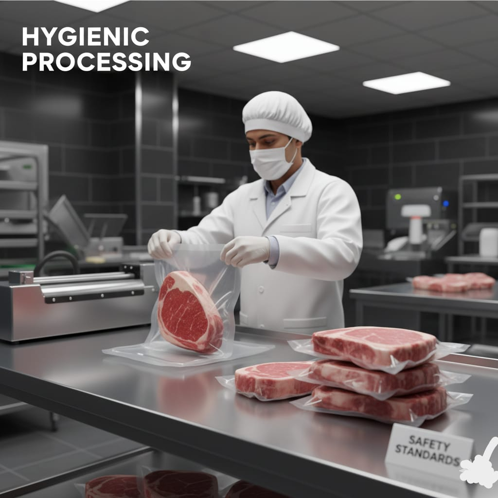 Vacuum Packing & Safety: Hum gosht ko mahfooz tareeqe se pack karte hain taake uski tazgi (freshness) barkarar rahe.